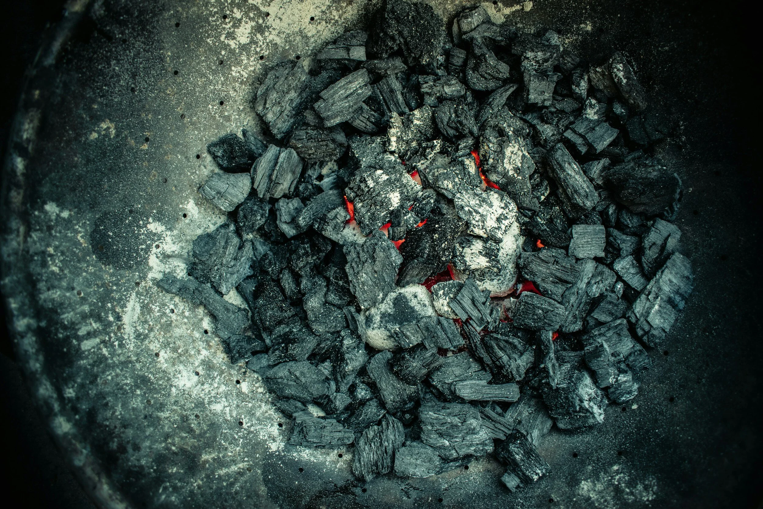 Using a hose, thoroughly douse the coal bed. Rake the wet coals to find hot spots and re-wet as needed until it’s cold.