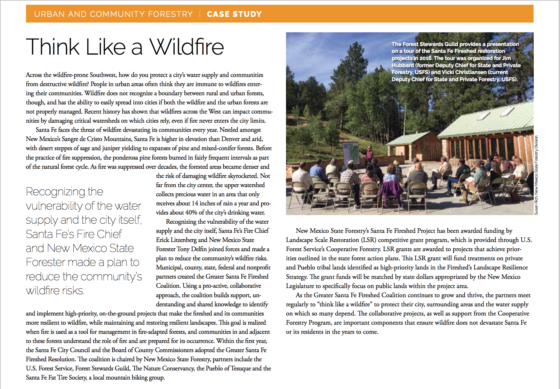 The Greater Santa Fe Fireshed was recently featured as a case study in the new US Forest Service Cooperative Forestry Publication (p. 38). Read the full publication here.