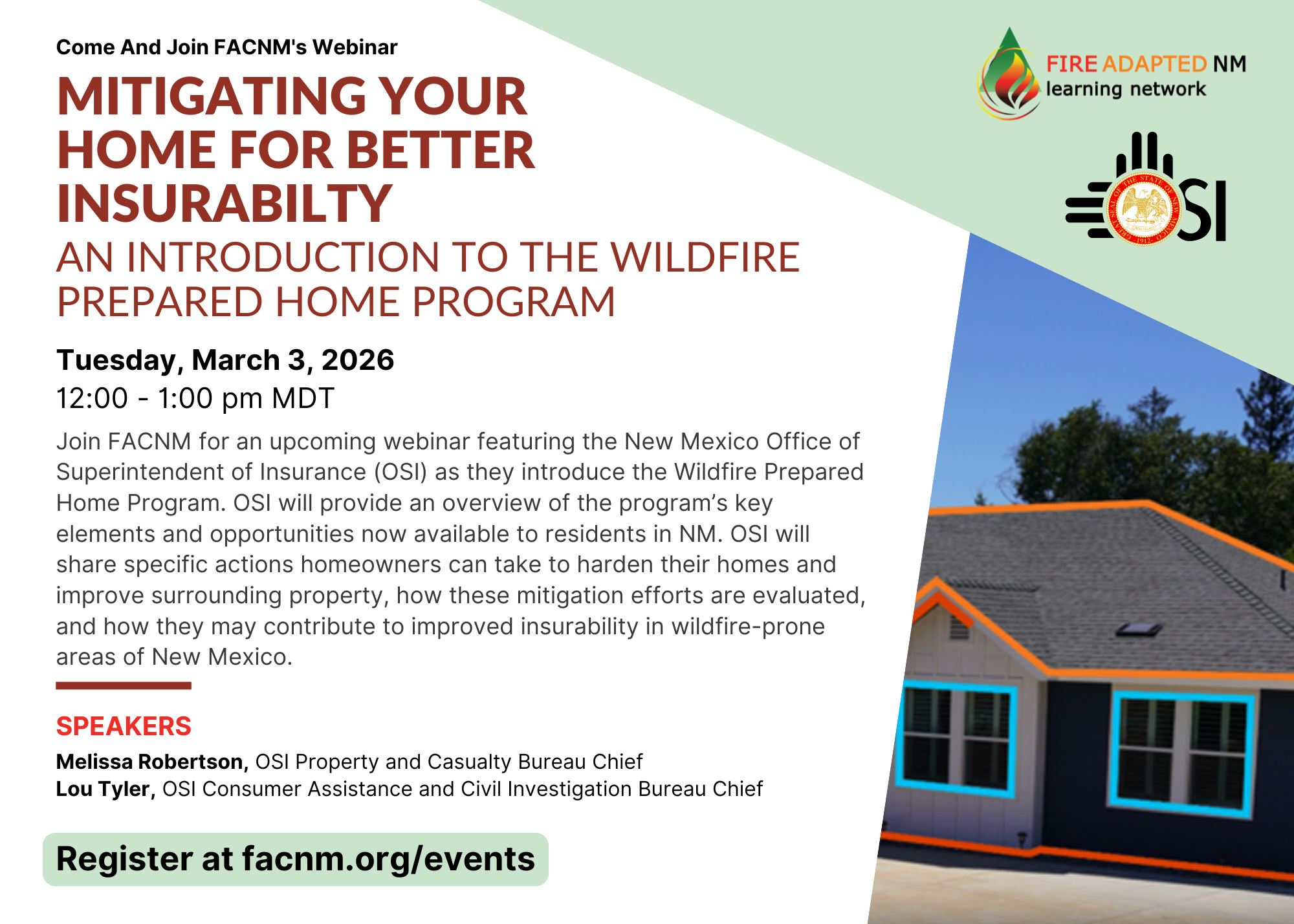 Each event will feature presentations and one-on-one conversations with experts from the Santa Fe County Fire Department, wildland firefighters, the Office of Emergency Management, and additional public safety and sustainability partners.
