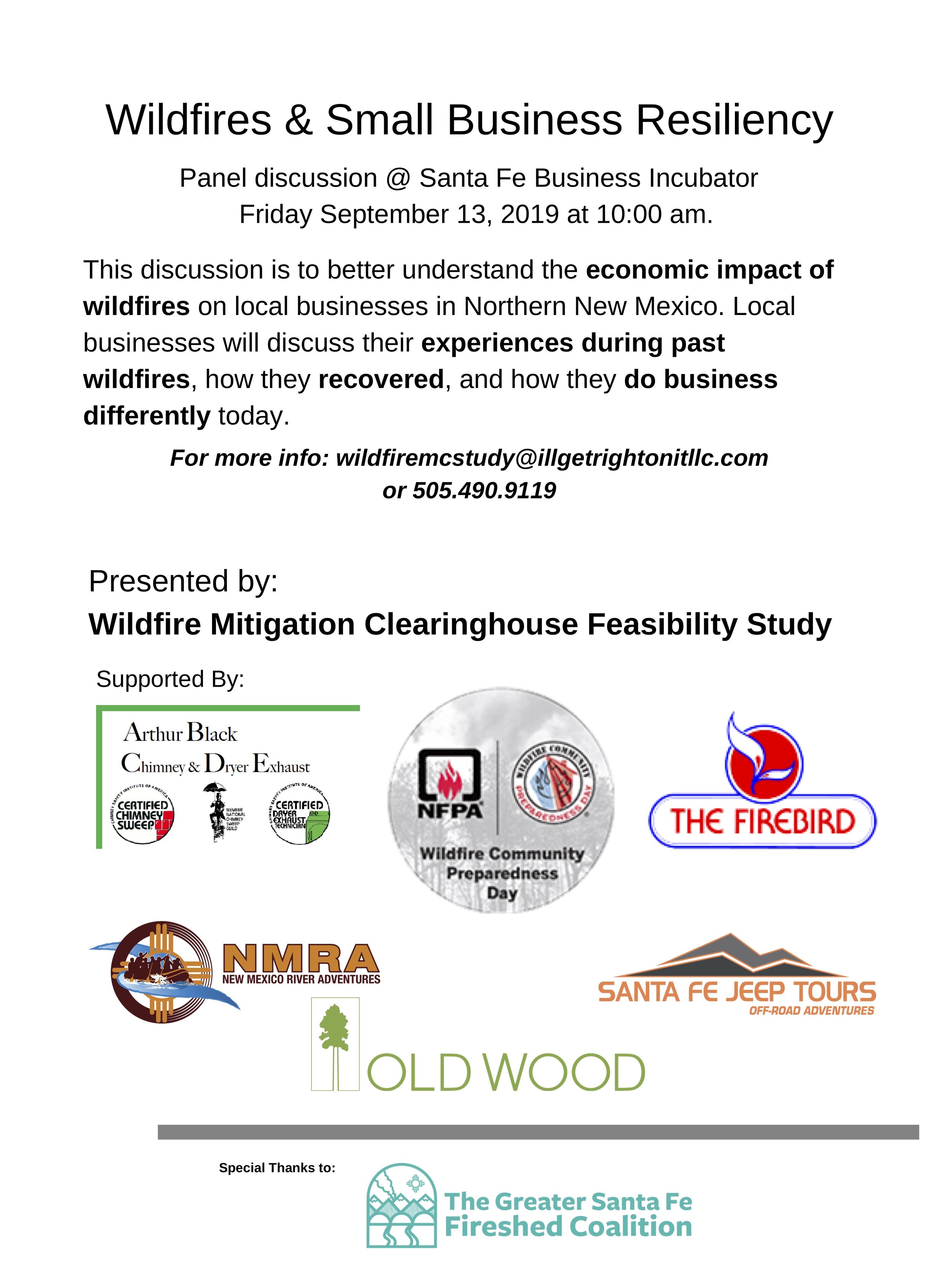 This discussion is to better understand the economic impact of wildfires on local businesses in Northern New Mexico. Local businesses will discuss their experiences during past wildfires, how they recovered, and how they do business differently today.